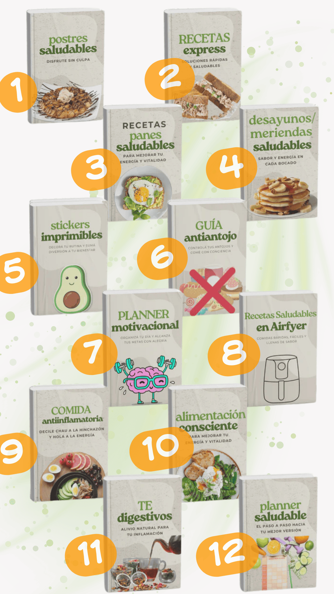 Recibís el Recetario saludable, la Guía de entrenamiento y los bonus exclusivos.Todo en formato digital (PDF) para que lo descargues y empieces ya mismo.